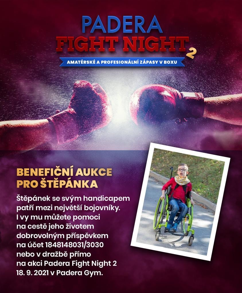 Součástí večera bude benefiční aukce na podporu handicapovaného Štěpánka, který patří mezi ty největší bojovníky na své cestě životem.
